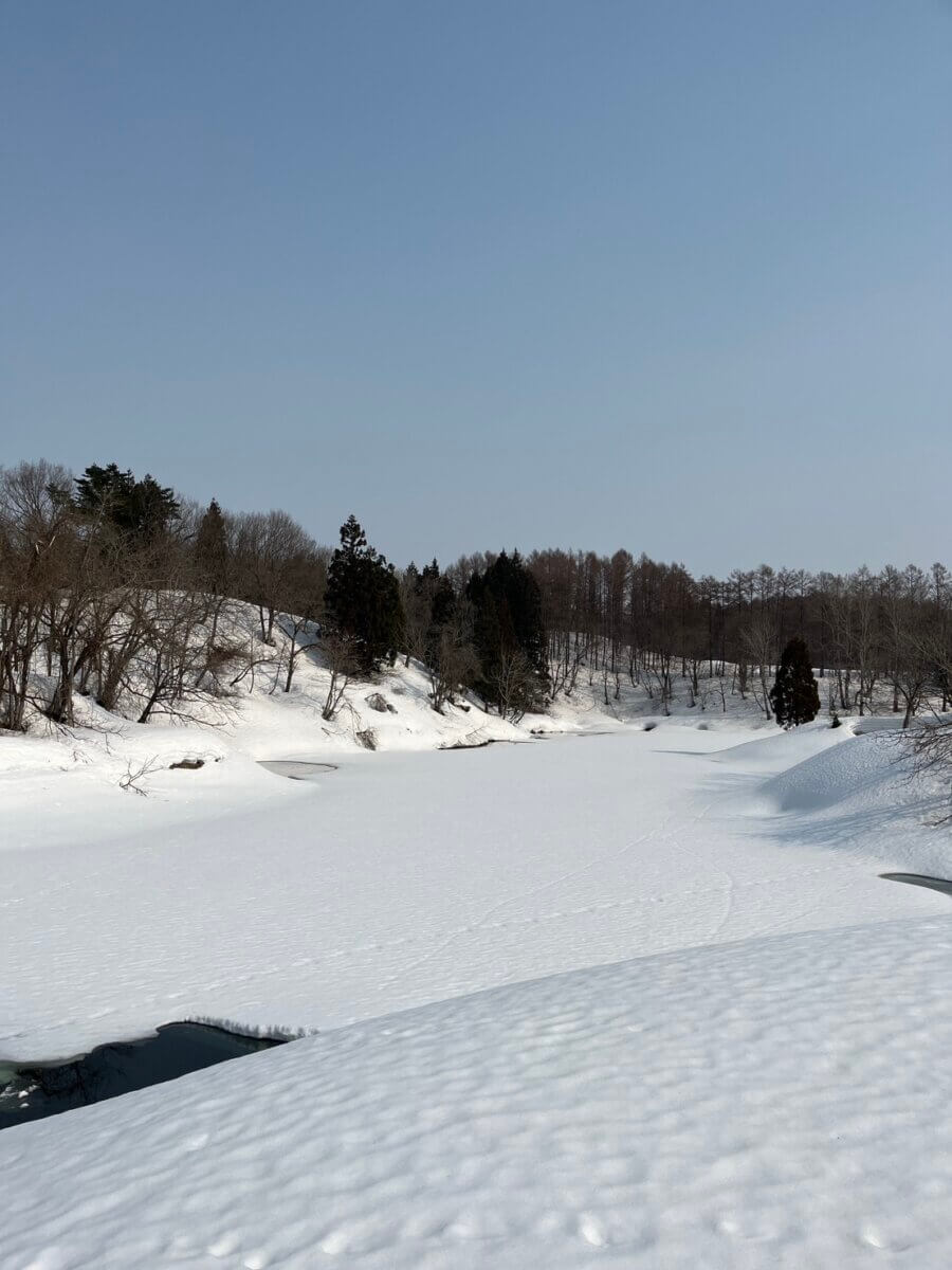 夏場のカヌー体験のフィールドも、冬になれば一面雪景色。