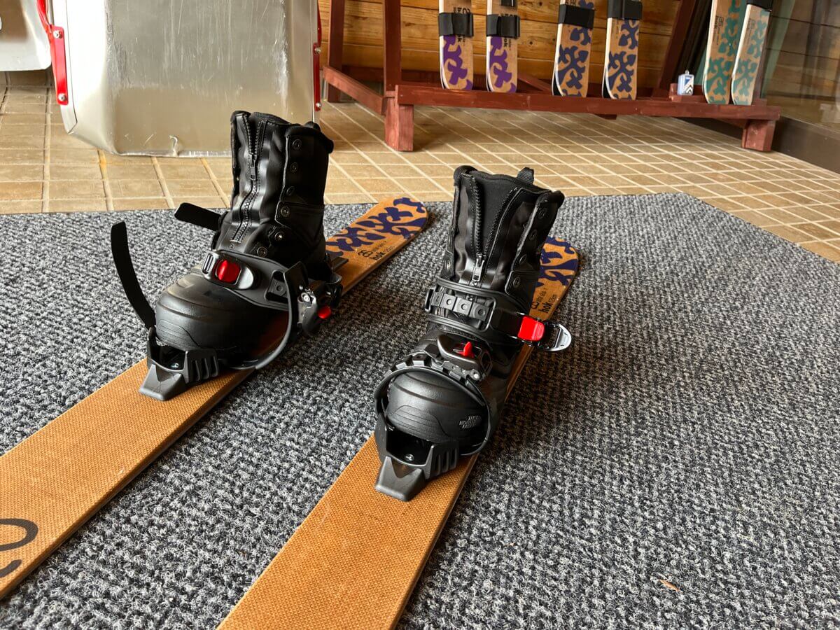 | その他 | シューズについて:スキーシューはスノーシューと同じくスキー靴は必要ありません。ウィンターブーツや登山靴で履くことが可能です。出来る限り硬めのホールド感のあるブーツを推奨致します。柔らかいブーツでも可能ですが、滑る際は不安定になりやすいです。長靴はオススメしません。 |