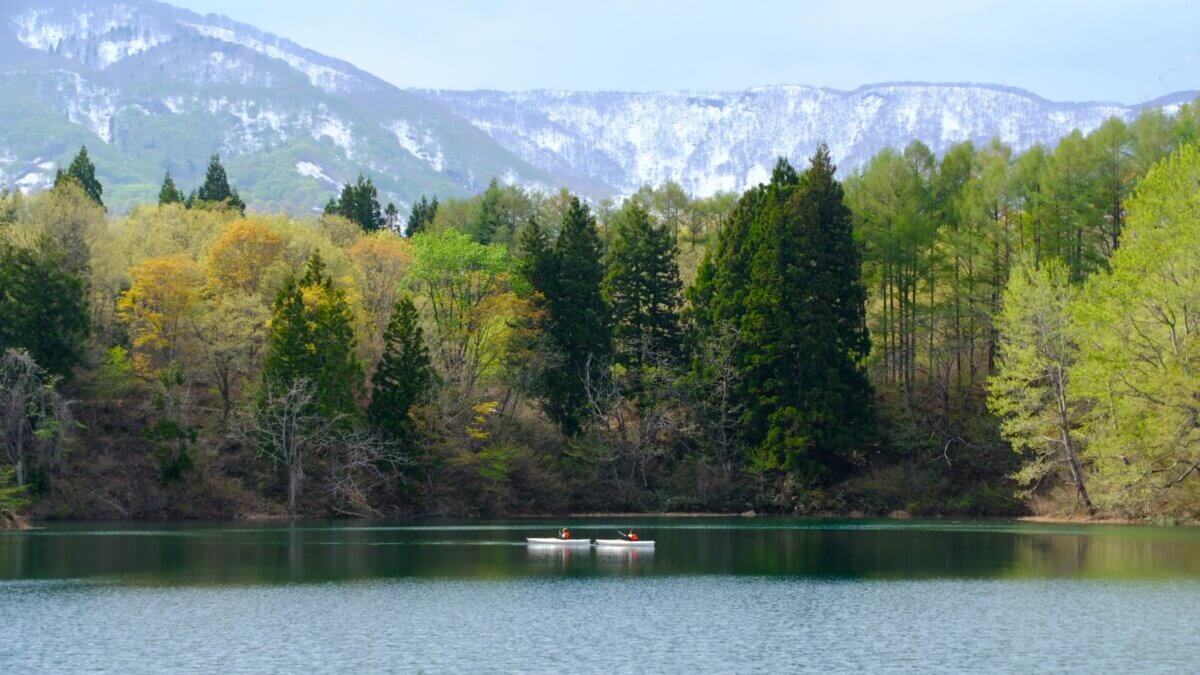 水の上から見える山々や池に住む生き物を見つけながらゆっくりと周ります。