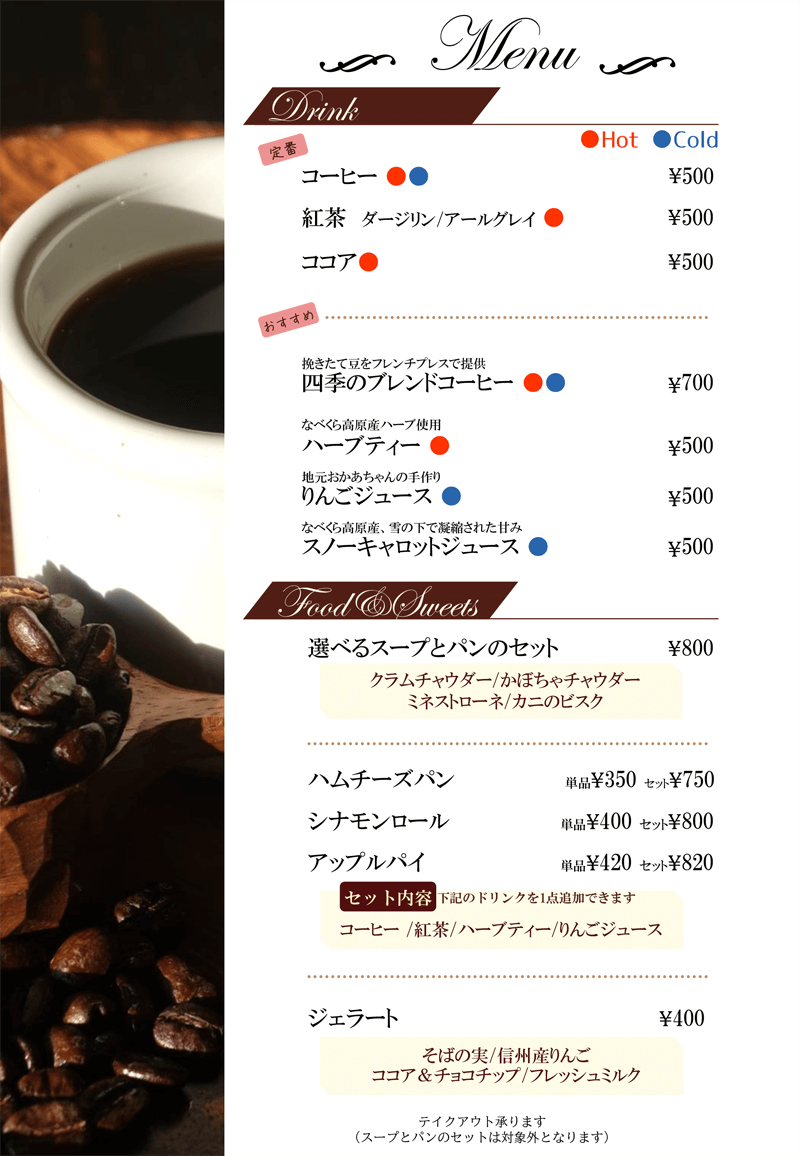 ラストオーダーは閉館30分前となります