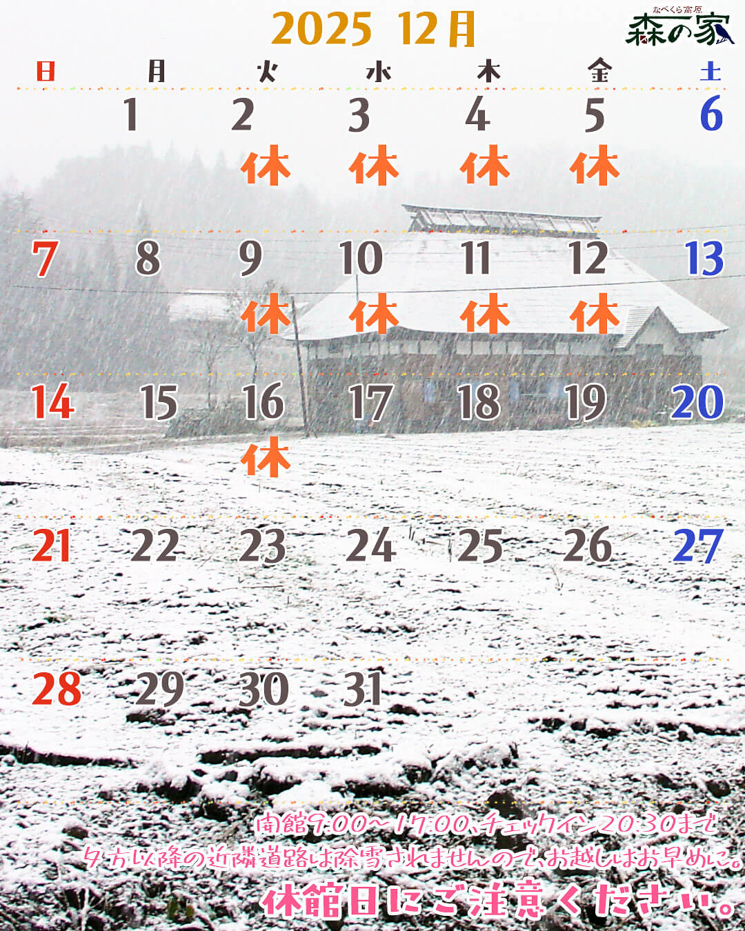 12月から冬期営業時間として、開館時間が1時間早まっています。